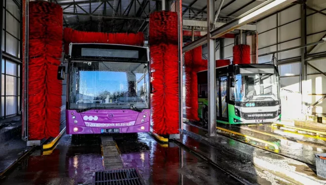 Van'da toplu taşıma araçları titizlikle temizleniy...
