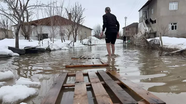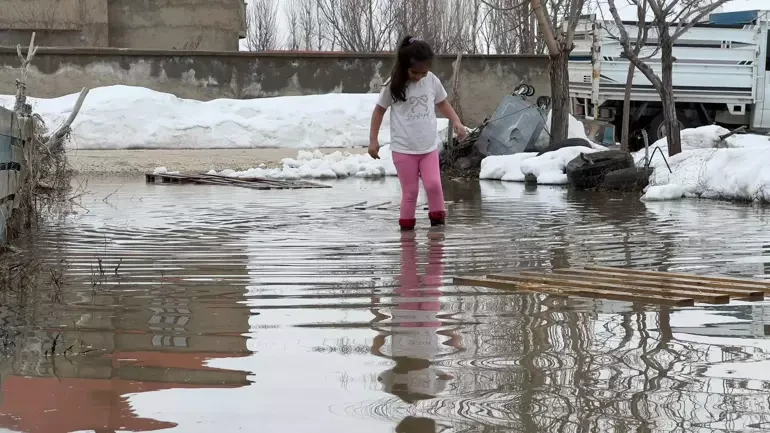 Yüksekova'da biriken kar eriyince evlerin bahçeleri su ile doldu