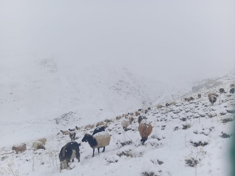 İlçede yüksek kesimlerde otlayan sürü de kar yağışına yakalandı. Kar yağışı etkisini sürdürürken ekipler karla mücadele çalışması başlattı.