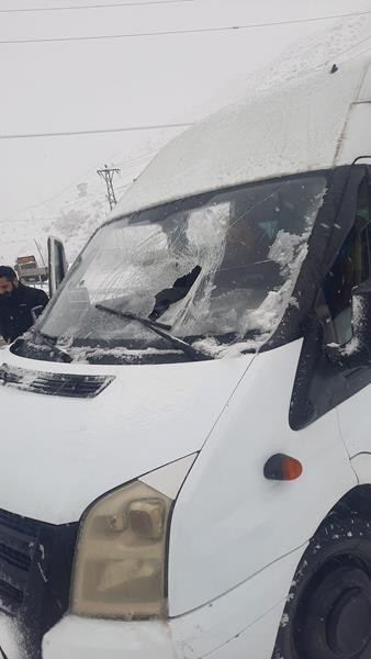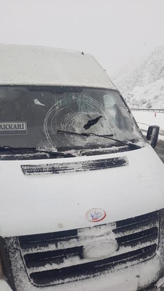 Edinilen bilgilere göre olay, sabah saatlerinde Yüksekova-Van kara yolunda bulunan Yeni köprü mevkinde meydana geldi. İzgar Düzen'in yönetimindeki 30 D 1017 plakalı yolcu minibüsü seyir halinde olduğu sırada dağdan kopan kaya parçaları aracın ön camına düşerek yürekleri ağza getirirken içinde bulunan 10 yolcu ölümden döndü.
