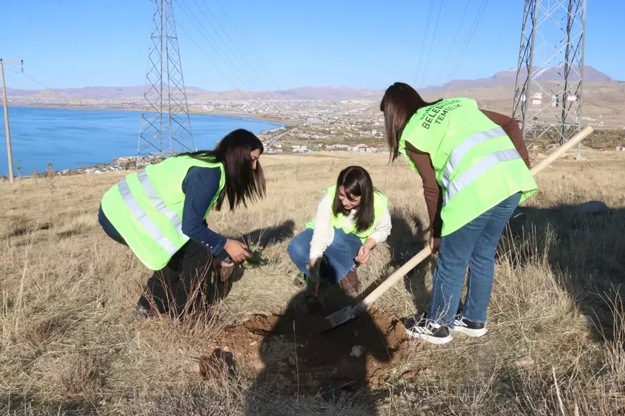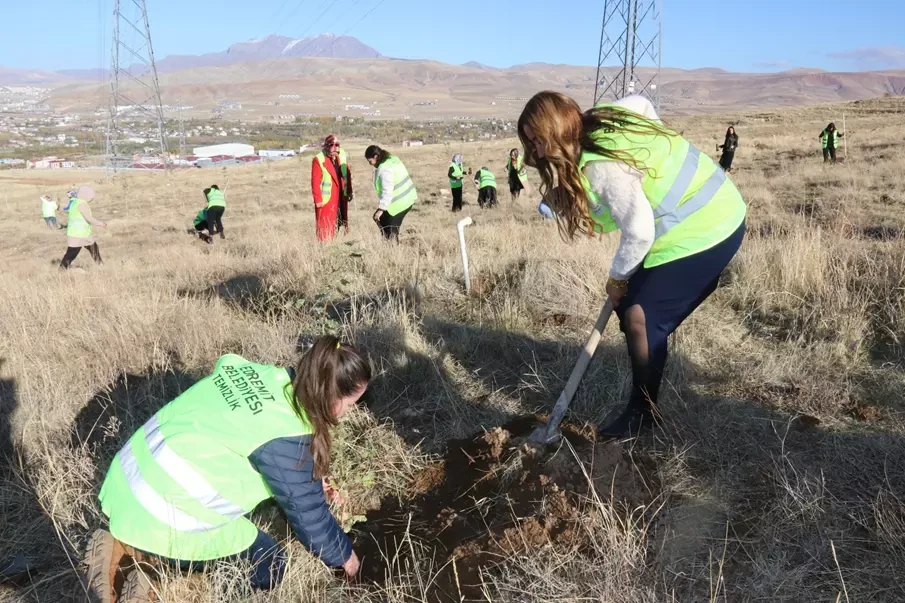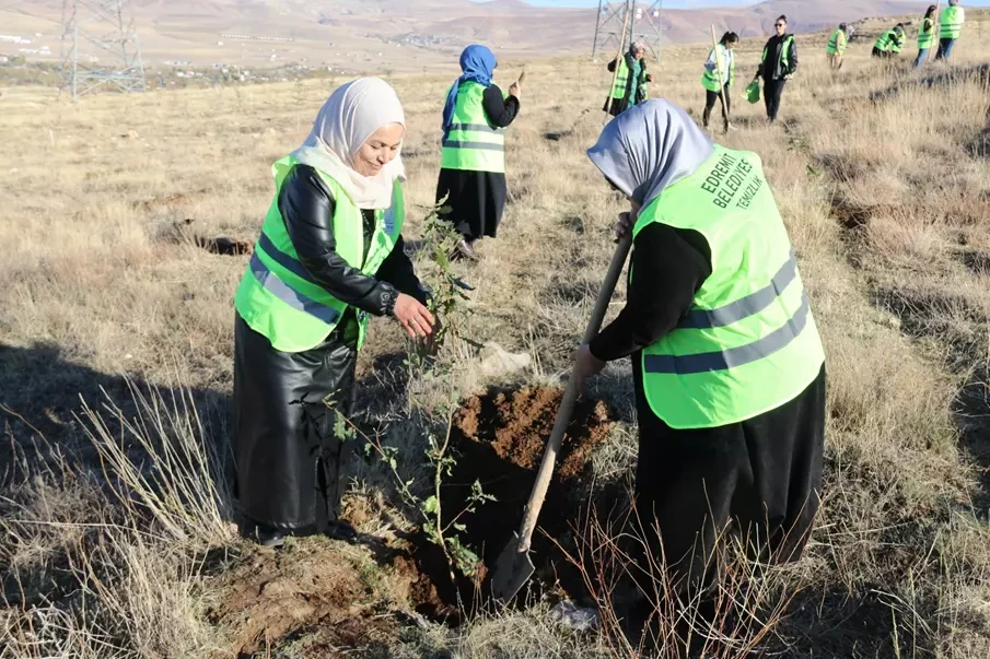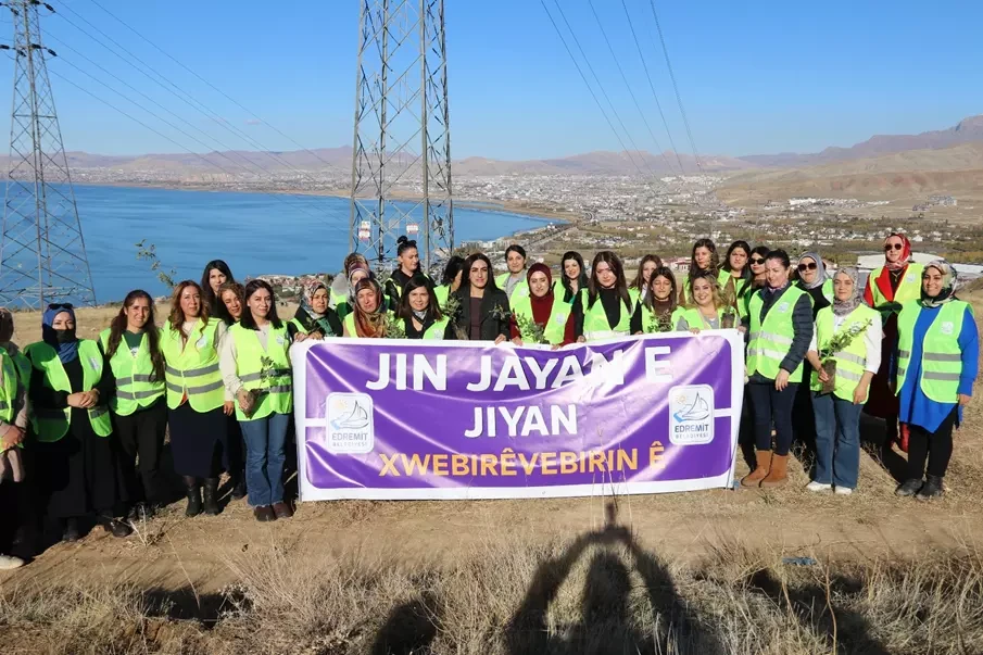 Edremit Belediyesi Kadın Politikaları Müdürlüğü, 25 Kasım Kadına Yönelik Şiddetle Mücadele Günü kapsamında Erdemkent Mahallesi Kent Ormanı’nda anlamlı bir etkinlik düzenledi. Etkinlikte yüzlerce meşe fidanı, Van Gölü’nün mavisine karşı toprakla buluşturuldu.