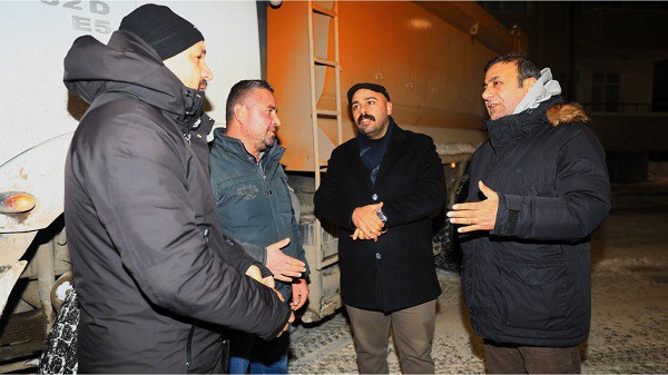 Kar temizleme çalışmalarının sürdüğü noktalarda incelemelerde bulunan Ergün ve Altın, saha emekçilerini selamlayarak özverili çalışmalarından dolayı teşekkür etti. Emekçilerle birebir görüşmeler gerçekleştiren heyet, yürütülen çalışmalar hakkında bilgi aldı.