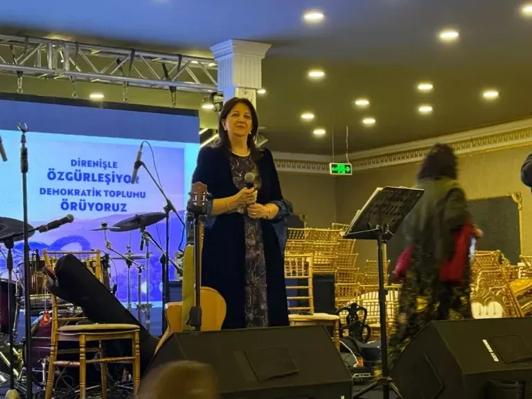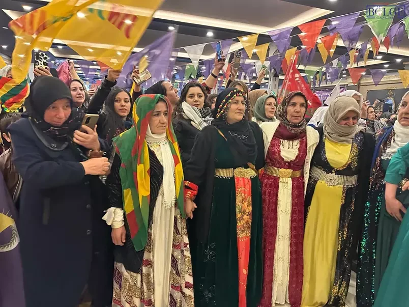 ABD-İsrail ve İran arasında yaşanan savaşa değinen Pervin Buldan, “İran’da yaşanan savaş kabul edilebilir değil. Biz savaşı değil barışı savunuyoruz. Savaş hiçbir şeye ilaç değil. İran’da yıllarca bu zorba rejim Kürtlere baskı yaptı ama bunun göndermenin çaresi asla savaş olmamalıdır. Her sorun masa başında ve diyalogla çözülebilir. Bir an önce İran’a yönelik savaş durmalı ve orada Kürt halkı başta olmak üzere tüm halklar eşit yurttaş olarak yaşamalıdır. Kürtler kendi dilleri, kültürleri, diğer hakların sahip olduğu tüm haklara sahip olmak istiyor. Kürt halkını yaşatılan hukuksuzluk artık bitmelidir. Dünyanın yapay zeka ile yönetildiği bir dönemde artık halkların kırımına izin vermeyeceğiz. Barış tüm Ortadoğu’ya, Kürtlere ve tüm halklara ama en başta kadınlara gelsin” dedi.