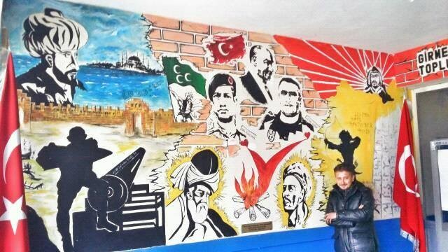 Yunkuşak Ortaokulu Resim Öğretmen İlker Sarı tarafından beton zemin üzerine akrilik boya kullanarak çizilen ‘Tarihin Seyrini Değiştirenler Abidesi’ adlı çalışma, hem okulun fiziki görünümüne hem de çocuklarda milli şuurun oluşmasında büyük katkı sağlıyor.