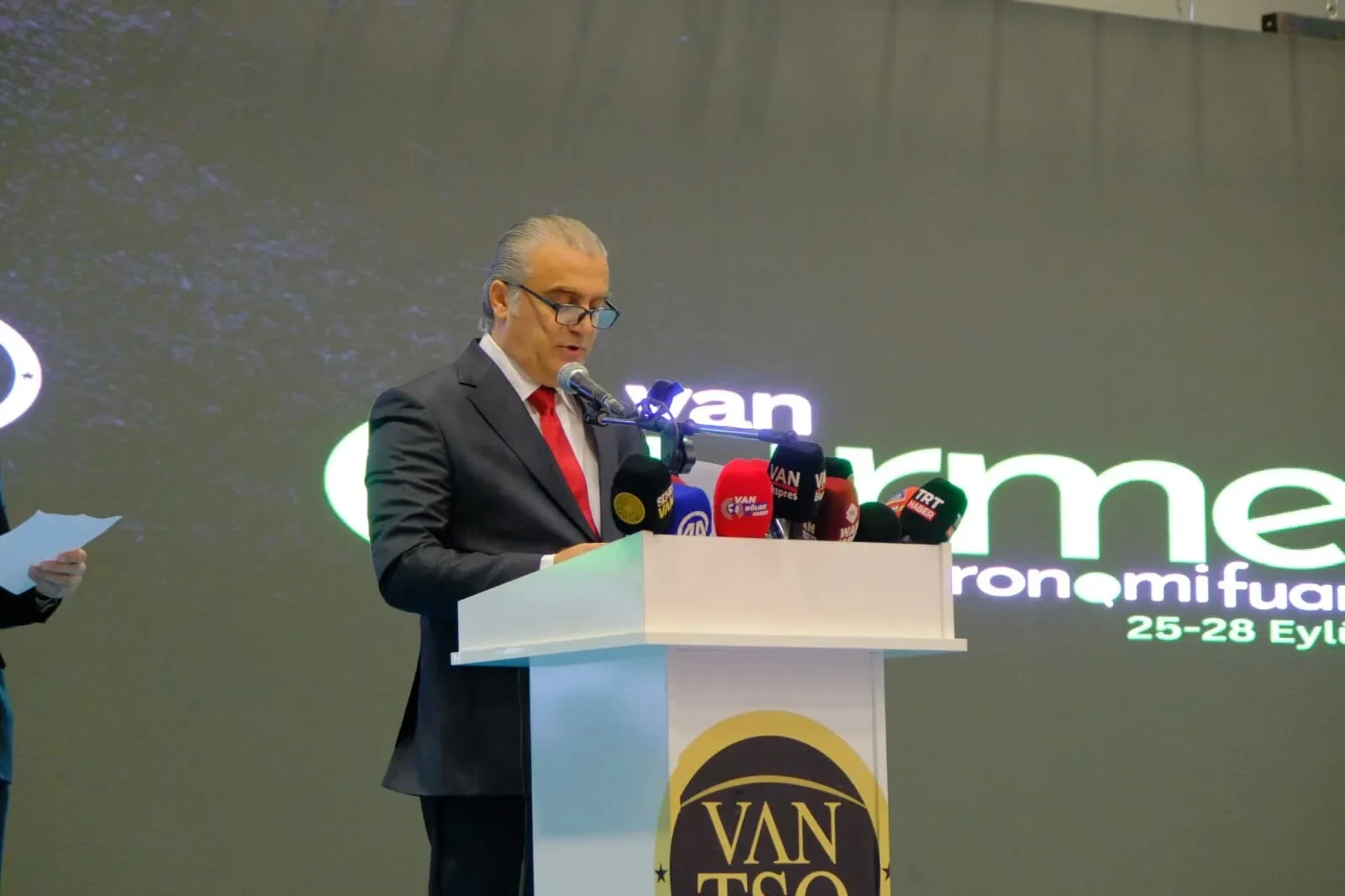 Programın açılış konuşmalarını yapan Van TSO Yönetim Kurulu Başkanı Necdet Takva, “Van, asırlardır bir kültür, tarih ve medeniyet şehri, her dinin ve dilin beşiği, kardeşliğin, barışın ve sıcaklığın merkezi. Van Gölü’nün mavisi, Menua Kanalı’nın bereketi, Süphan’ın heybeti ve güneşinin sıcaklığıyla bir lezzet hazinesi. Otlu peyniri, kavurması, balı, kaymağı, keledoşu, sengeseri, ayran aşı, murtuğası ve daha yüzlerce yemeğiyle zengin bir mutfak kültürüne sahiptir. 14 coğrafi tescilli ürünüyle gastronomi alanında önemli bir yer edinmiş.” dedi.