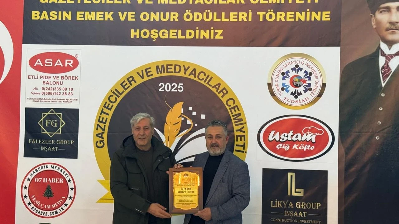 2025 yılı Basın Emek ve Onur Ödülleri kapsamında verilen ödül, törene katılamayan İshak Kara adına Van Ekspres Ankara Temsilcisi Haydar Erdinler, GMC Genel başkanı Köksal Selçuk'un elinden ödül aldı.