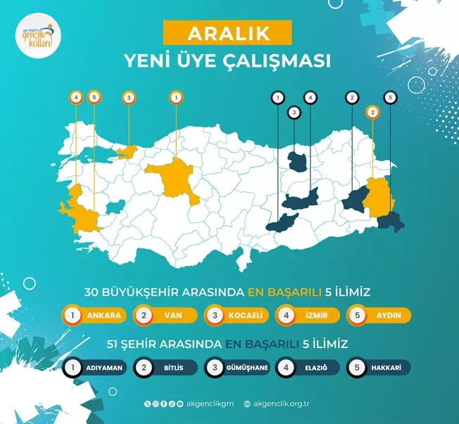 "Van olarak, 30 büyükşehir arasında Türkiye 2’ncisi olmanın gururunu yaşıyoruz. Bu başarı; sahada ter döken teşkilatımızın emeği, gençlerimizin bitmeyen heyecanı ve bizlere duyulan güvenin eseridir. Aynı inanç, aynı azimle çalışmaya devam edeceğiz. Van gençliği varsa, umut da var!"