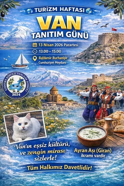 Balıkesir Edremit Körfezi Vanlılar Derneği, bu yıl da Turizm Haftası etkinlikleri kapsamında Burhaniye ilçesinde “Van Tanıtım Günü” düzenlemeye hazırlanıyor. Düzenlenecek etkinlikle Van’ın zengin kültürel mirasının daha geniş kitlelere ulaştırılması hedefleniyor.