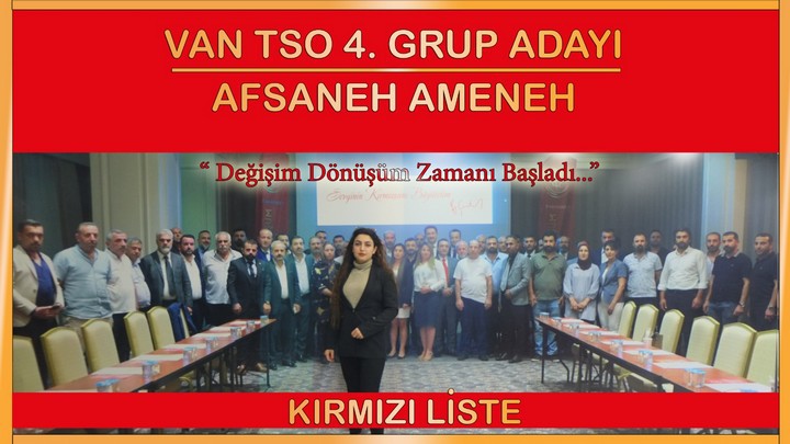 Yaklaşık 4 yıldır Van'da bulunan Ameneh, Başkan Adayı İzzet Çoban'a destek verdiğini belirterek, "İran, Mahabad doğumluyum. Yaklaşık 4 senedir Van'da ikamet ediyorum. Bu süre içerisinde kendime ait olan firmam ve mağazamla kent ekonomisine katkı sunmaktayım. 22 Ekim tarihinde gerçekleşeçek olan Van Ticaret ve Sanayi Odası seçimlerinde Başkan Adayımız İzzet Çoban liderliğindeki Kırmızı Listeden 4. gruptan aktif olarak seçimlere katılacağım. Kırmızı Listeyi tercih etmemim amacı İzzet Bey'in değişim ve dönüşüme olan inancı ve sunmuş olduğu projelerdir. Yine Sayın Çoban'ın kadınlara öncelik vermesini çok değerli buldum. Bu yüzden kırmızı listede bünyesinde seçimlerde yarışmayı tercih ettim. Çünkü, kadınlar medeniyetin kapısıdır. Sevginin kırmızısını hep beraber büyütelim." Dedi.
