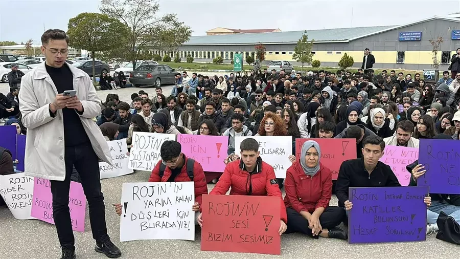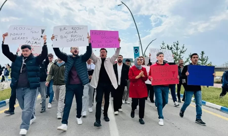 'Rojin sustu, biz susmayacağız', 'Adalet yerini bulana kadar buradayız', 'Rojin intihar etmedi, katiller bulunsun ve hesap sorulsun', 'Rojin için susma', 'Bu sessizlik suskunluk değil, direniştir' dövizlerinin açıldığı açıklama sonunda oturma eylemi yapıldı. Eylemin ardından grup dağıldı.