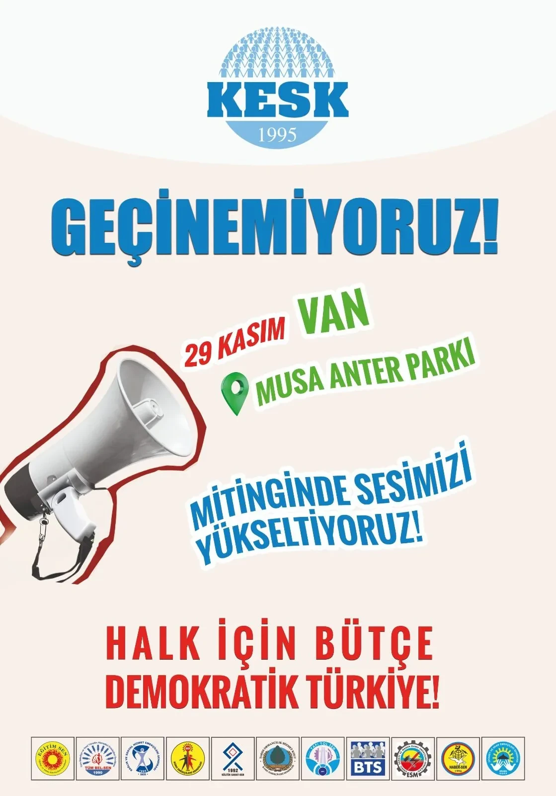 Vanhaber.tr'nin haberine göre; “Geçinemiyoruz!” sloganıyla düzenlenecek miting, 29 Kasım cumartesi günü Van Musa Anter Parkı’nda gerçekleştirilecek.