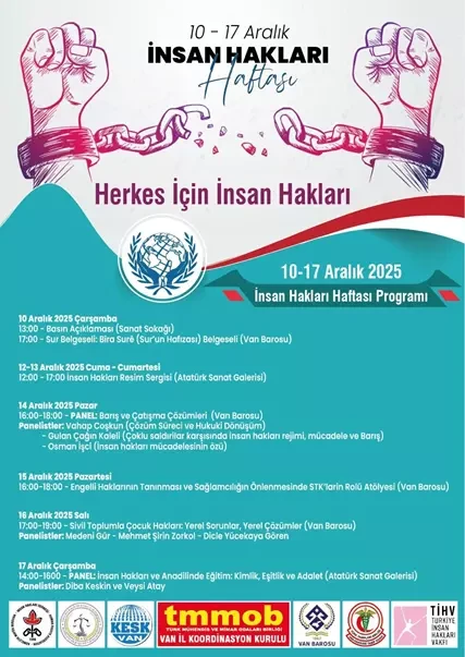 Van’da bir hafta boyunca çeşitli etkinliklerle insan hakları mücadelesinin önemine dikkat çekilecek. (vanhaber.tr)