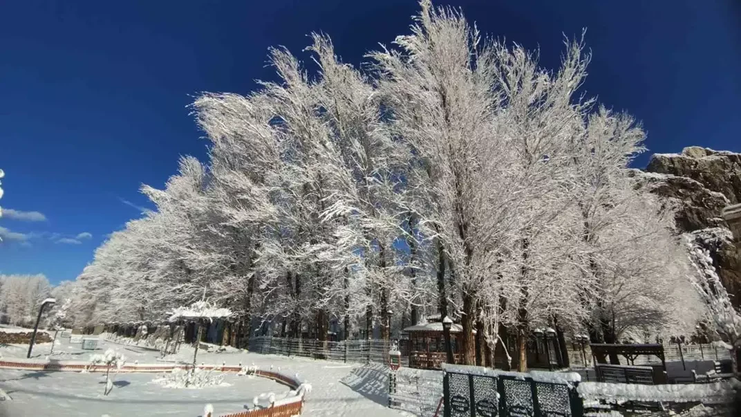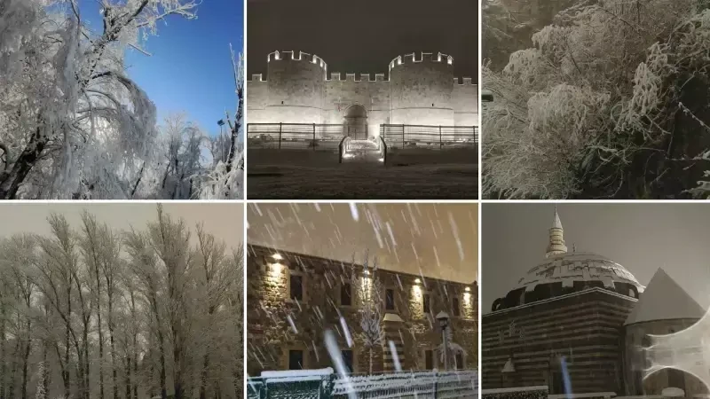 Sabahın ilk ışıklarıyla ortaya çıkan görüntüler, vatandaşlara seyir zevki yüksek kareler sundu. Gece yarısı başlayan yağışla birlikte ağaçlar kar çiçekleri açarken, tarihi ve turistik mekanlar beyaz örtüyle kaplandı. Özellikle Van Kalesi güneyindeki tarihi Husrev paşa Külliyesi, Horhor Camii ve ağaç dallarında biriken karlar, sessizliğin hakim olduğu alanda estetik bir dokunuş kattı.