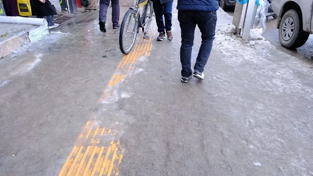Özellikle engelliler için yapılan sarı bantların üzerinde oluşan buzlar da hem engelli bireyleri hem de diğer vatandaşları zor durumda bırakıyor.
