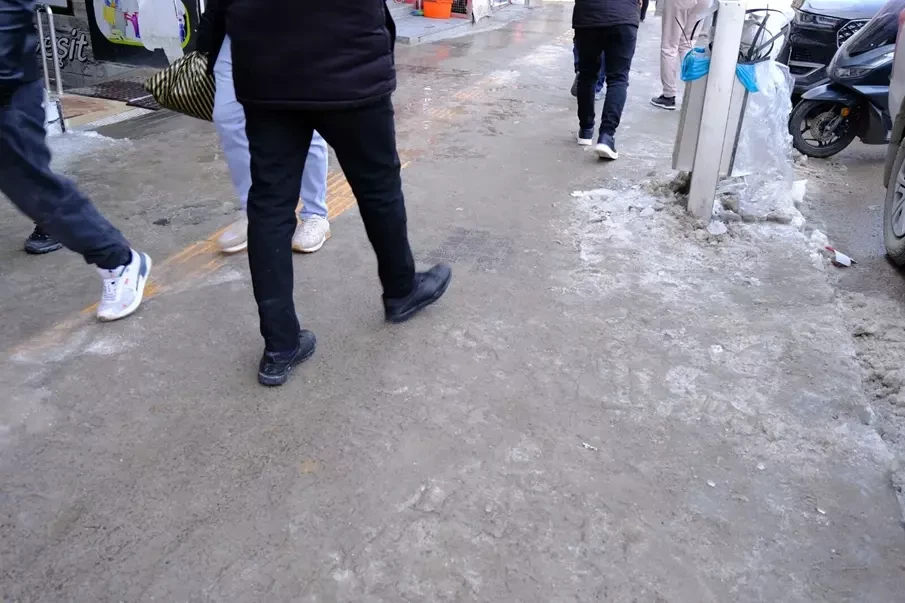 Bazı kaldırımlarda eriyen karlar zamanla, soğuk havanın da etkisiyle buz tabakasına dönüşüyor. Özellikle Van’ın en işlek noktalarından olan Beşyol mevkii Sıhke Caddesi bölümü ile Milli Egemenlik Caddesi’nde ve kent merkezinin belli noktalarında yer yer oluşan buzlanma, yaya geçişini zorlaştırıyor.