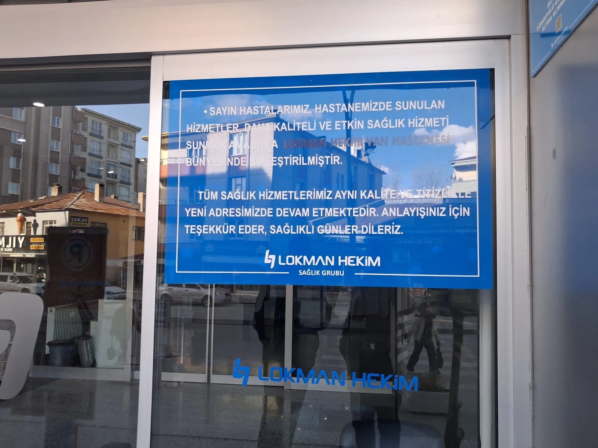 Kapanma kararı verilen hastanenin giriş kapısına yazılan yazıda; “Sayın hastalarımız, hastanemizde sunulan hizmetler daha kaliteli ve etkin sağlık hizmeti sunmak amacıyla Lokman Hekim Hastanesi bünyesinde birleştirilmiştir. Tüm sağlık hizmetlerimiz aynı kalite ve titizlikle yeni adresimizde devam etmektedir. Anlayışınız için teşekkür eder, sağlıklı günler dileriz. Lokman Hekim Sağlık Grubu” denildi.