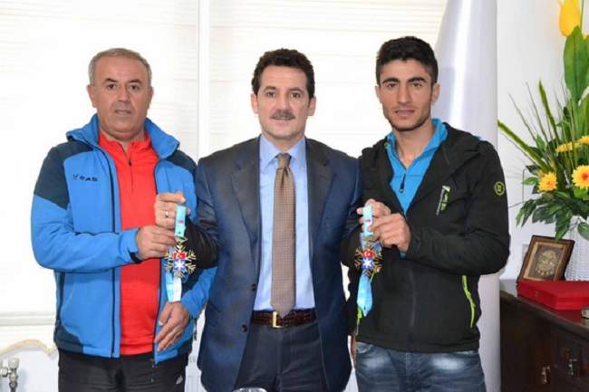 Türkiye şampiyonu Ömer Ayçiçek ve Milli Kayak Antrenörü Halis Korkmaz, müsabaka dönüşü şampiyonluklarını Van Gençlik Hizmetleri ve Spor İl Müdürü Nevzat İnanç ile paylaştılar. Milli Kayak Antrenörü Halis Korkmaz, kent adına yurtiçinde ve yurtdışında birçok müsabakalarda sayısız başarılara imza attıklarını belirterek, “Bu başarılardan birisi de Bolu’da yapılan Türkiye Kayaklı Koşu Şampiyonası’dır. Katıldığımız yarışmaların birçoğunda Türkiye şampiyonluğu, ikinciliği ve üçüncülüğü elde etmenin karşılığı olarak sporcumuz Ömer Ayçiçek olimpiyat kadrosuna davet edildi. Bu güzel başarılarından dolayı sporcumuzu tebrik ediyor, bizlere vermiş olduğu desteklerinden dolayı il müdürümüz Nevzat İnanç Beye teşekkür ediyoruz” dedi.