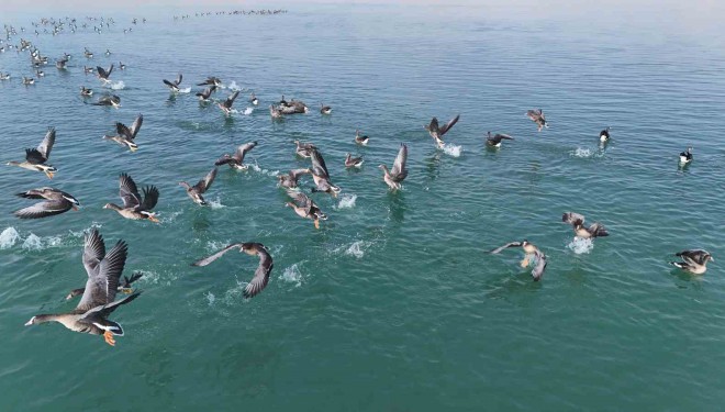 Erçek Gölü’nün yeni misafirleri küçük sakarcalar havadan görüntülendi