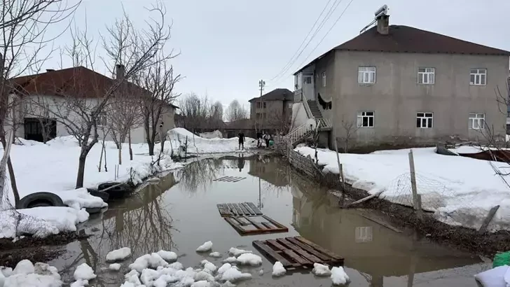 Yüksekova'da biriken kar eriyince evlerin bahçeler...