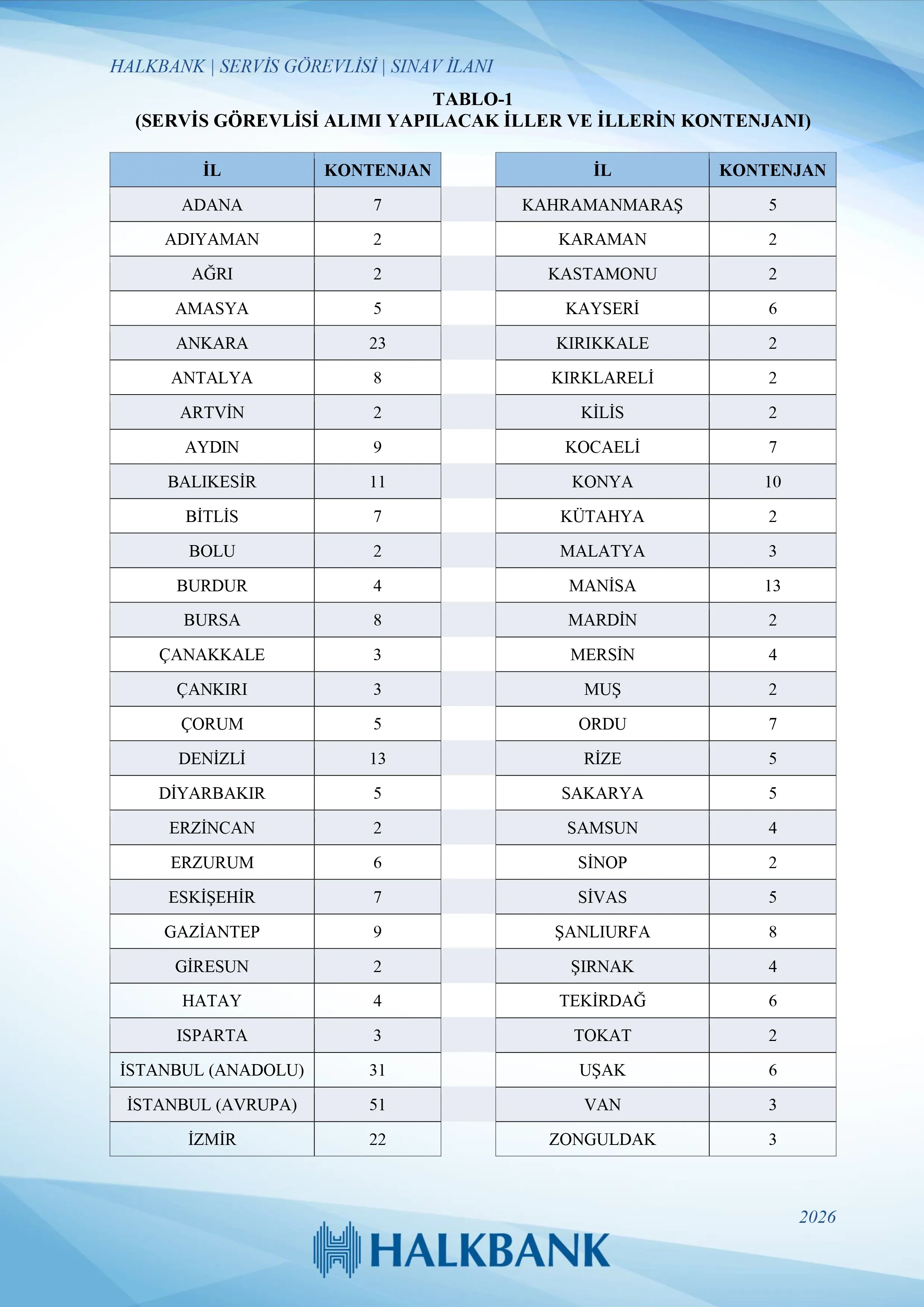 Halk Bankasının Van dahil birçok ildeki bankalarda istihdam edilecek 700 kişilik daimi personel alımı için başvuru tarihileri 24 Mart 2026 – 12 Nisan 2026 (Pazar günü saat 23.59’a kadar) olarak belirlendi. Halk Bankasına alınacak personeller için yapılacak yazılı sınav tarihi 26 Nisan 2026 saat 14.00 olarak açıklanırken yazılı sınav Van dahil 11 ilde yapılacak.