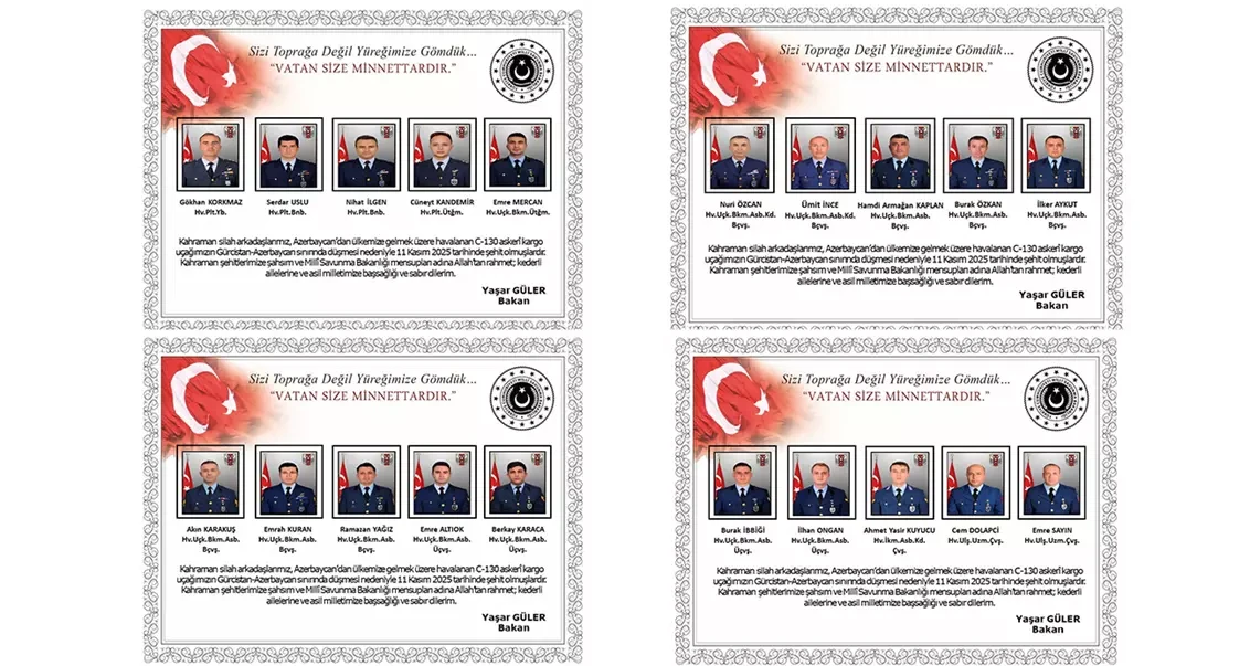 Şehadete eren askerlerin isimleri ise şu şekilde: "Hava Pilot Yarbay Gökhan Korkmaz, Hava Pilot Binbaşı Serdar Uslu, Hava Pilot Binbaşı Nihat İlgen, Hava Pilot Üsteğmen Cüneyt Kandemir, Hava Uçak Bakım Üsteğmen Emre Mercan, Hava Uçak Bakım Astsubay Kıdemli Başçavuş Nuri Özcan, Hava Uçak Bakım Astsubay Kıdemli Başçavuş Ümit İnce, Hava Uçak Bakım Astsubay Başçavuş Hamdi Armağan Kaplan, Hava Uçak Bakım Astsubay Başçavuş Burak Özkan, Hava Uçak Bakım Astsubay Başçavuş İlker Aykut, Hava Uçak Bakım Astsubay Başçavuş Akın Karakuş, Hava Uçak Bakım Astsubay Başçavuş Emrah Kuran, Hava Uçak Bakım Astsubay Başçavuş Ramazan Yağız, Hava Uçak Bakım Astsubay Üstçavuş Emre Altıok, Hava Uçak Bakım Astsubay Üstçavuş, Berkay Karaca, Hava Uçak Bakım Astsubay Üstçavuş Burak İbbiği, Hava Uçak Bakım Astsubay Üstçavuş İlhan Ongan, Hava İkmal Astsubay Kıdemli Çavuş Ahmet Yasir Kuyucu, Hava Ulaştırma Uzman Çavuş Cem Dolapci, Hava Ulaştırma Uzman Çavuş Emre Sayın."