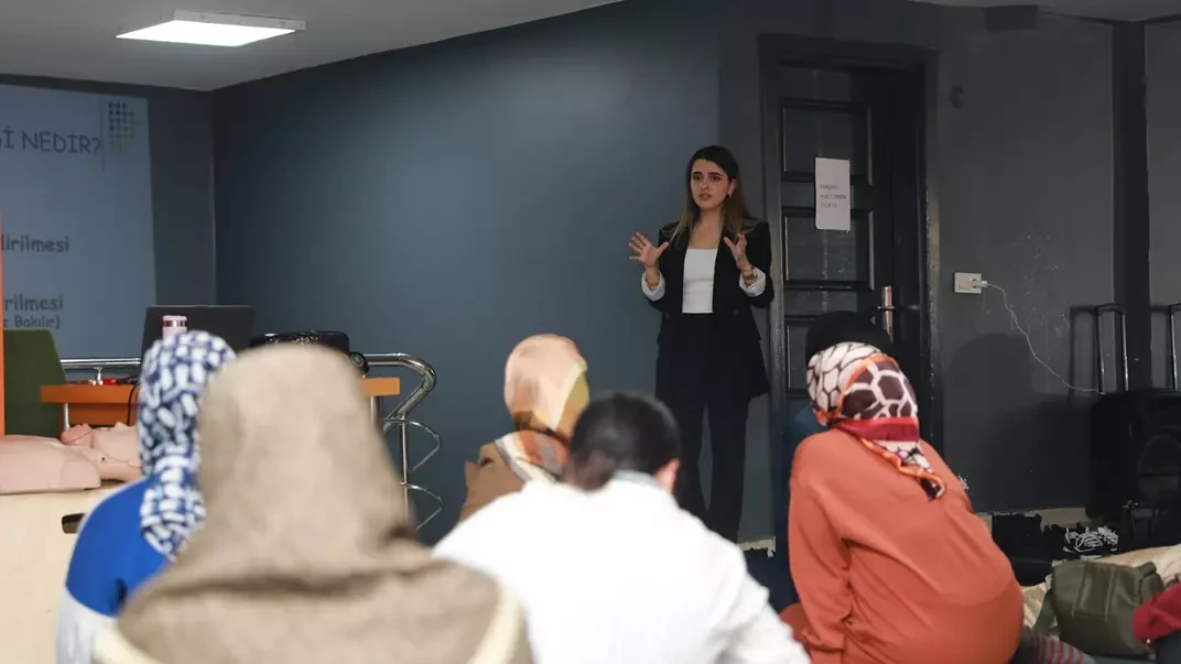 “Evde kadınlara temel yaşam desteği, evde başlarına gelen olumsuz bir olayda nasıl müdahale etmeleri gerektiğini anlattık. Bu eğitim genelde sağlık çalışanlarına ya da iş yerlerinde çalışan erkeklere verilen bir eğitim. Fakat evde bir sorun yaşandığında kendilerini nasıl koruyacaklarını kadınların bilmesi gerektiğini düşünüyoruz. Eğitimin ücretsiz ve ulaşılabilir olması çok önemli.”