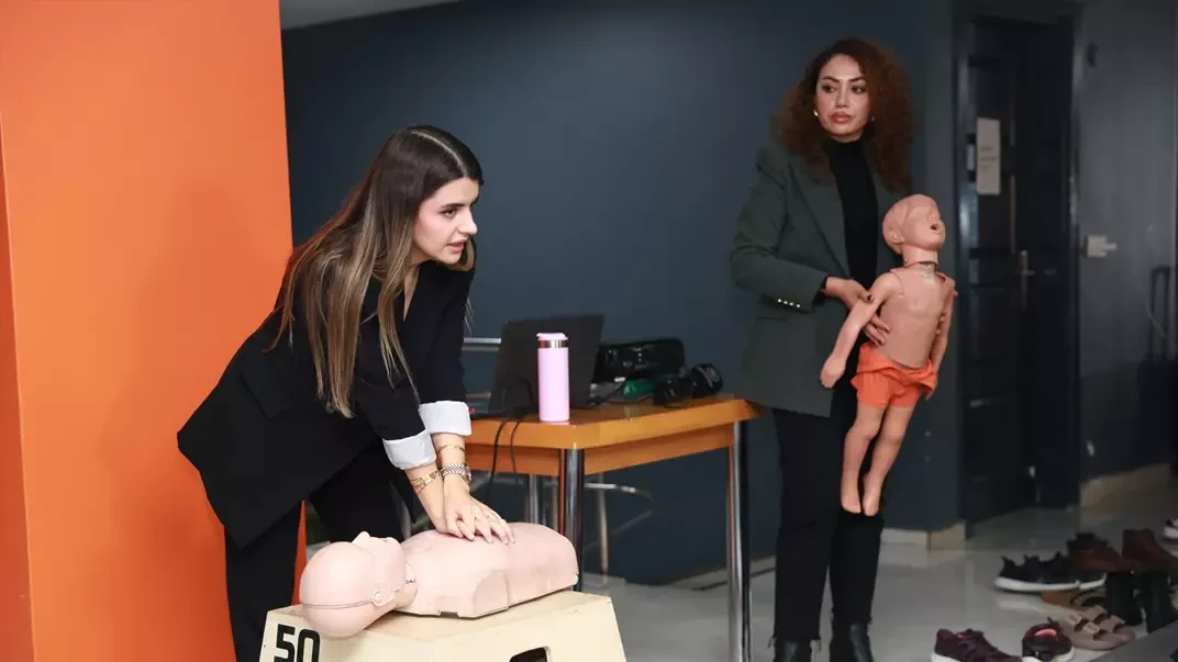 Eğitime katılan kadınlara yetişkin, çocuk ve bebekler için temel ilk yardım bilgileri ile Heimlich manevrası uygulamalı olarak anlatıldı. Sağlık çalışanı Özlem Erişiş, evde karşılaşılabilecek acil durumlarda kadınların nasıl müdahale etmeleri gerektiğini aktararak şunları söyledi: