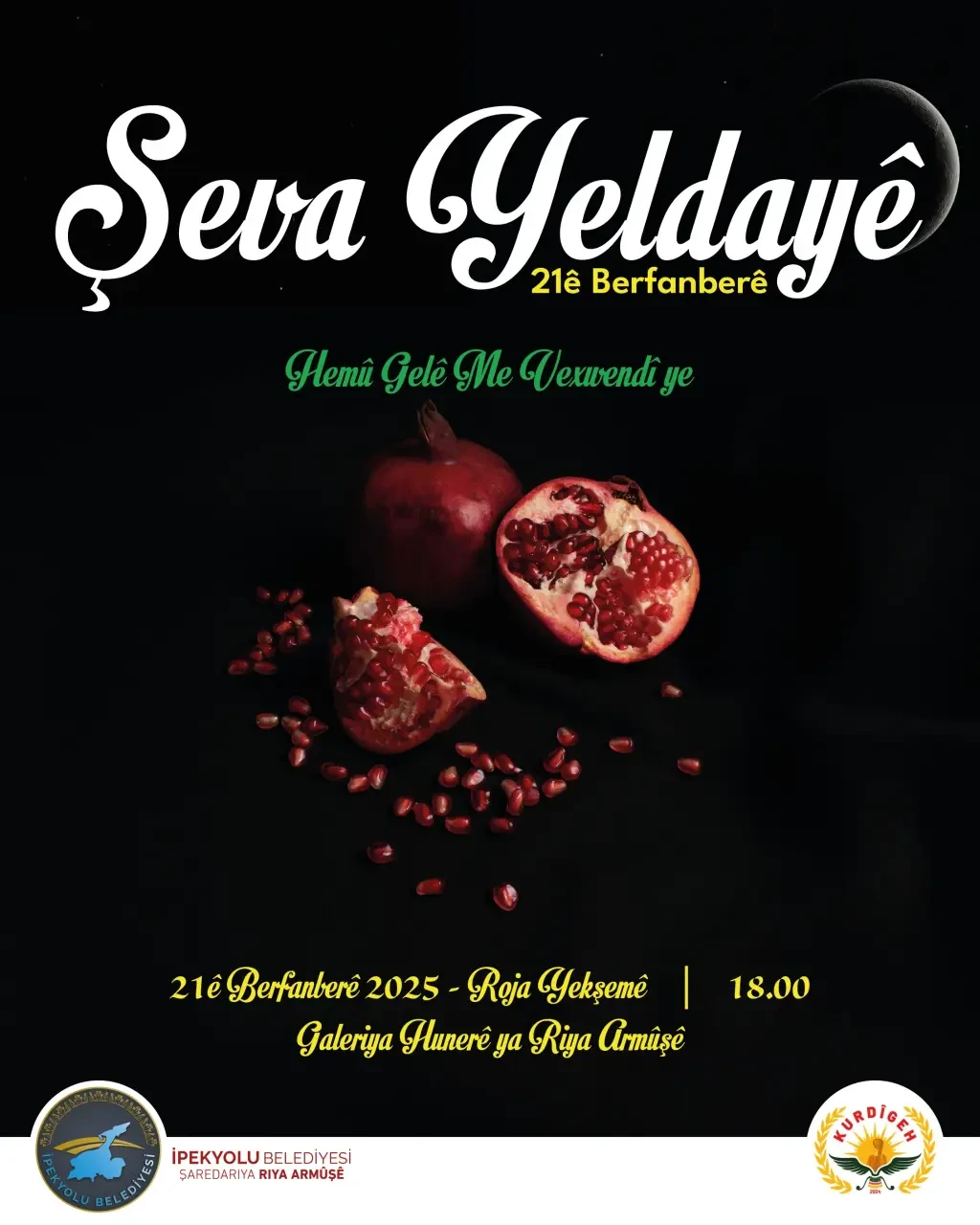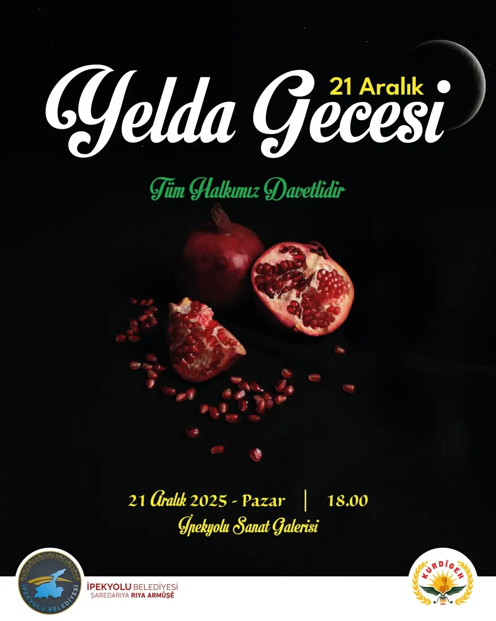 "21 Aralık Yelda Gecesi’nde (Şeva Yeldayê), başta Kürtler olmak üzere Ortadoğu halklarının kadim geleneğinde karanlığa karşı umudu ve aydınlığı birlikte büyütüyoruz. Öyküler, şiirler ve stranlarla birbirimizin yüreğine yolculuk yapacağımız bu gecede, KURDİGEH’le ortak hazırladığımız programa tüm halkımız davetlidir."