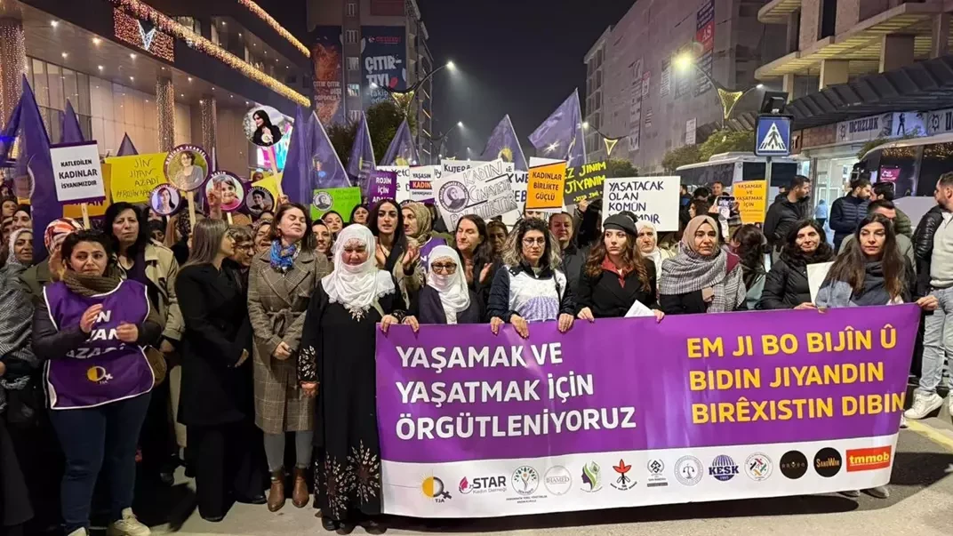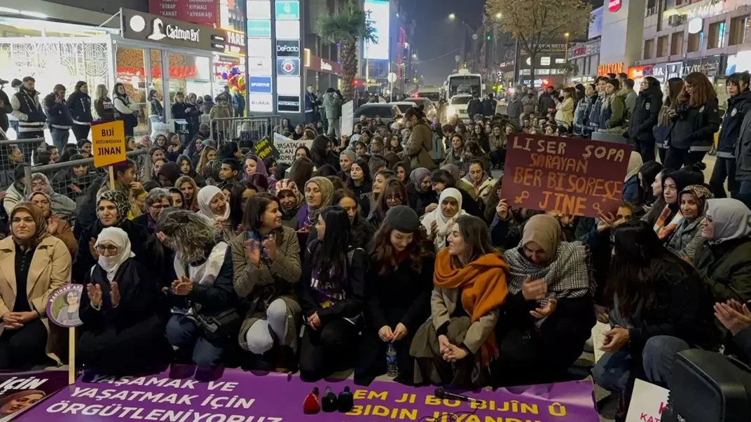 Tevgera Jinên Azad (TJA), Star Kadın Derneği, DEM Parti Yerel Yönetimler Kadın Komisyonu, KESK, İHAMED, Van Barosu, İHD, Aryen, Şanowan ve TMMOB Kadın Komisyonları ile Xeta Jinê, Evin Kadın Kooperatifi’nin aralarında olduğu kadın örgütleri, 25 Kasım nedeniyle bir yürüyüş gerçekleştirdi.