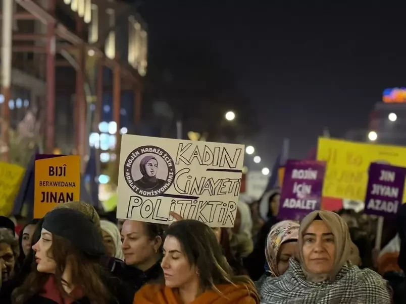 Kadına yönelik şiddetin, yalnızca bireysel bir sorun değil; siyasi ve toplumsal bir mesele olduğunu söyleyen Burcu Şeber, “Kadınların yaşam alanlarının daraltıldığı, özgürlüklerinin hedef alındığı bu zamanlarda sessiz kalmak kabul edilemez. Bizler devletin ve kurumların yükümlülüklerini yerine getirmediği, şiddeti önleme mekanizmalarının kâğıt üzerinde bırakıldığı her anın yeni bir kadın cinayetine zemin oluşturduğunu görüyor ve buna dur diyoruz. Karanlıkta bırakılan Rojin Kabaiş’in şüpheli ölümünü aydınlatmak için, Nadira için, Gülistan için, Semra için, Şule için buradayız. İsmini bir kağıda sığdıramayacağımız tüm kadınlar için gerçekleri açığa çıkarmaya, faillerden ve bu düzeni koruyanlardan hesap sormaya devam edeceğiz. Kadınların yaşam hakkı, adaletle güvence altına alınana kadar mücadelemiz sürecek. Hiçbir kadın yalnız değildi, hiçbiri sessizce unutulmayacak” diye konuştu.