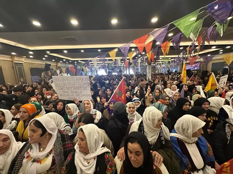 Daha sonra konuşan İmralı Heyeti Üyesi ve Meclis Başkanvekili Pervin Buldan, “Kadınların özgürlük, eşitlik talebi devam ediyor. Direnmeye devam edeceğiz ta ki kadınlar kendi kimlikleri ile özgür yaşayana kadar. Bu süreç var ve hepimizin dört elle bu sürece sarılması gerekiyor. Bu hepimizin görevidir. Yeni bir aşamaya geçildi. Demokratik Entegrasyon sürecini kadınlarla sürece omuz vereceğiz ve bunun üstesinden geleceğiz. Kadının olmadığı bir yerde barıştan, demokrasiden, hak, hukuktan söz edilemez. Hep birlikte barışı bu topraklara direnişimizle getirelim” dedi.