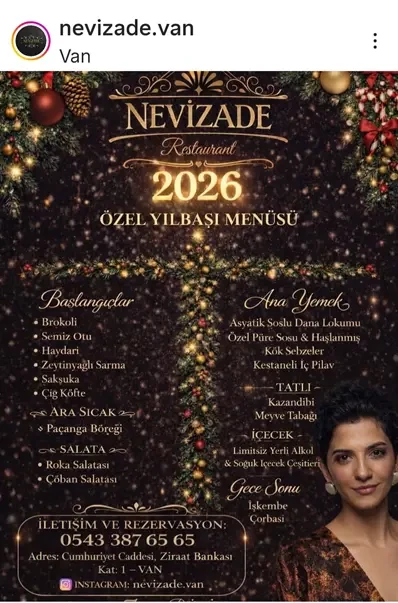 Aşkı, özlemi, dağların özgürlüğünü ve halkın derin duygularını taşıyan şarkılarıyla kalplere dokunan bu eşsiz ses, 31 Aralık gecesi Van Nevizade Restaurant'ta sahne alacak. Yılbaşı coşkusunu Zozan Bütün'ün büyüleyici performansıyla taçlandırmak isteyenler için kaçırılmayacak bir fırsat!