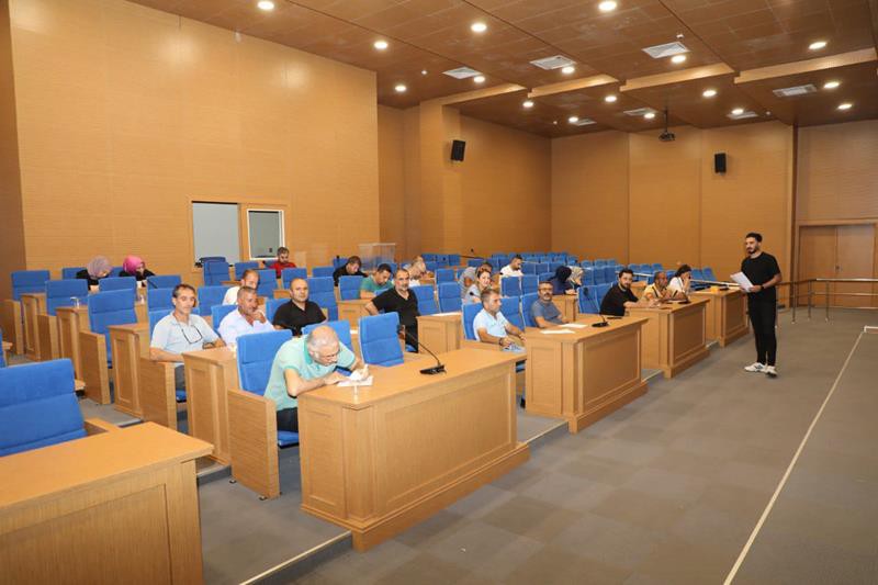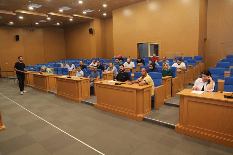 Büro personeline verilen eğitimde, hijyen ve meslek hastalıkları başlığı altında, işyeri temizliği ve düzeni, meslek hastalıklarının sebepleri ve çözümleri üzerinde duruldu. Büroda çalışan bir personelin sürekli masa başında olduğuna dikkat çeken Çelik, “Oturma şekli, sürekli ekrana maruz kalması ve sürekli oturmadan ve ekrana maruz kalmadan dolayı oluşabilecek hastalıklar var,” dedi.