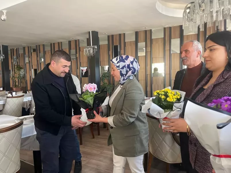 Yemek programının ardından Eşbaşkan Akkoş, emekçilere dayanışma ve teşekkürün simgesi olarak çiçek takdim etti.
