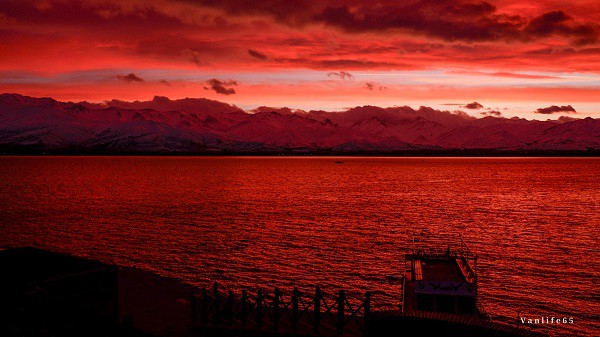3 bin 755 kilometrekarelik yüzölçümü ve 1646 metrelik rakımı ile bölgeyi cazibe merkezi haline getiren Van Gölü üzerinde, akşam saatlerinde güneşin ufuk noktasına yaklaşması ile oluşan kızıllık göz alıcı bir renge büründü.