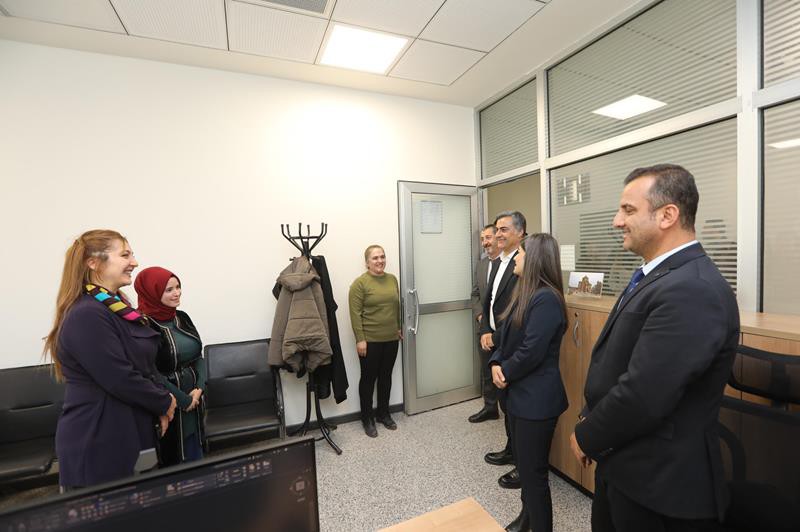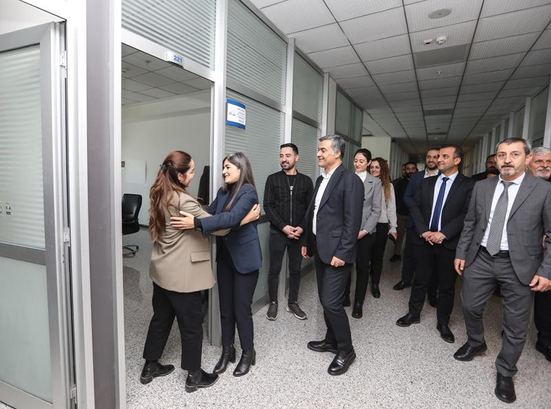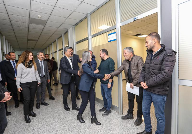 Büyükşehir Belediye Eşbaşkanları Neslihan Şedal ve Abdullah Zeydan ile beraberindeki Genel Sekreter, Genel Sekreter yardımcıları ve daire başkanları ile birlikte belediye hizmet binasında çalışanları ziyaret ederek, personelin sorun ve taleplerini dinledi. Teftiş Kurulu Başkanlığı’ndan başlayarak, personel odalarını tek tek gezen Eşbaşkan Şedal ve Zeydan, çalışanlara başarı dileklerinde bulundu.