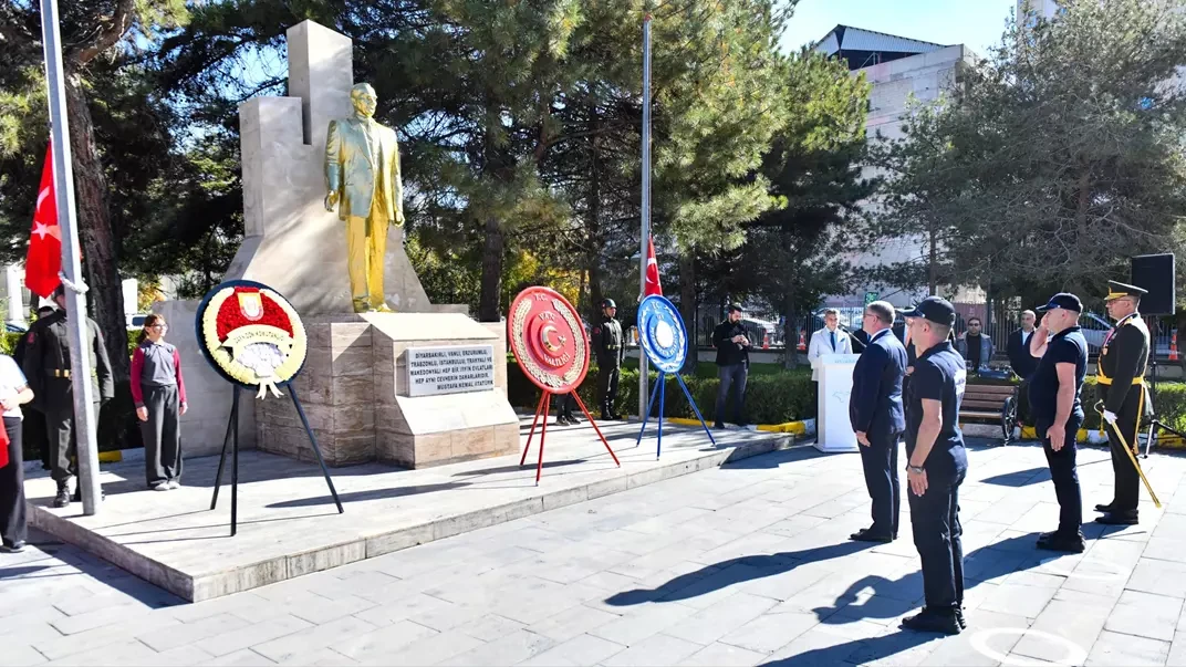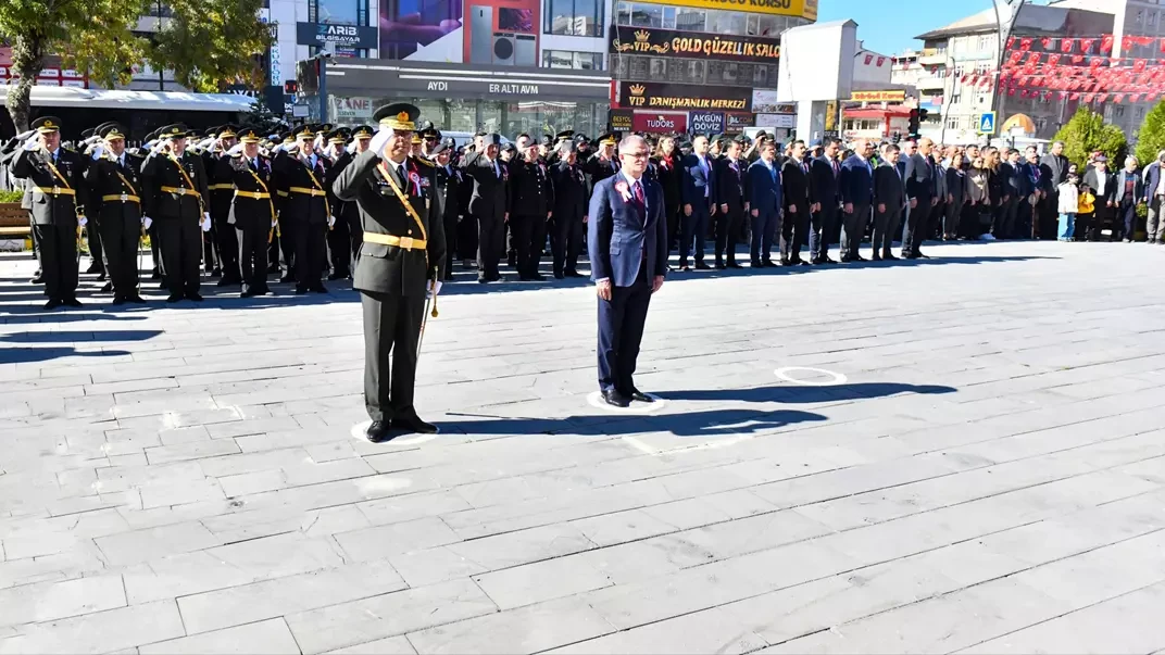 Van Valiliği'nden yapılan açıklamada şu ifadelere yer verdi: "Valimiz Sn. Ozan Balcı, Cumhuriyetimizin Kuruluşunun 102. yıl dönümü dolayısıyla Valilik önünde yapılan çelenk sunma törenine katıldı. Törende, Valimiz Sn. Ozan Balcı Valilik ve Van Büyükşehir Belediyesi çelengini, 6. Hudut Tugay Komutanı Tuğgeneral Sn. Ümit Çelik Garnizon Komutanlığı çelengini Atatürk anıtına sundu. Tören, saygı duruşu ve İstiklal Marşı’mızın okunmasıyla son buldu"