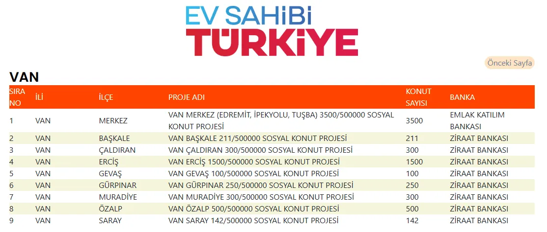 Ev Sahibi Türkiye sloganı ile Yüzyılın Konut Projesinin startı verilirken Van dahil 81 ilde yapılacak olan 500 bin sosyal konut projesinde 1+1, fiyatı ve konutların illere göre dağılımı belli oldu.