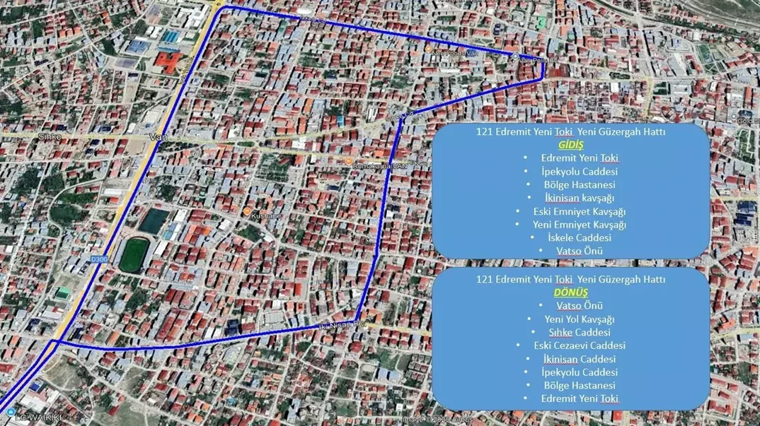 131 hat numaralı mevcut güzergah korunacak olup, ek olarak yeni bir düzenlemeyle 131A Hat Kodu ile Erdemkent Metropol Alışveriş Merkezinin önünden Van Merkez güzergahında hizmet verecektir.