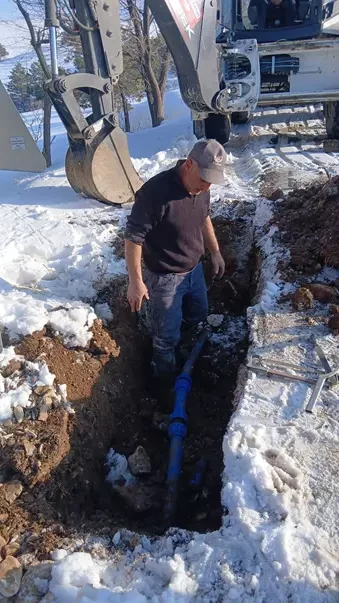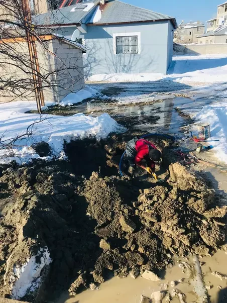 Soğuk hava koşullarına rağmen İçme Suları Dairesi Başkanlığı ekiplerinin titiz çalışmalarıyla mahalle sakinlerinin içme suyu ihtiyacı yeniden güvenli ve sağlıklı bir şekilde karşılanmaya başlandı.