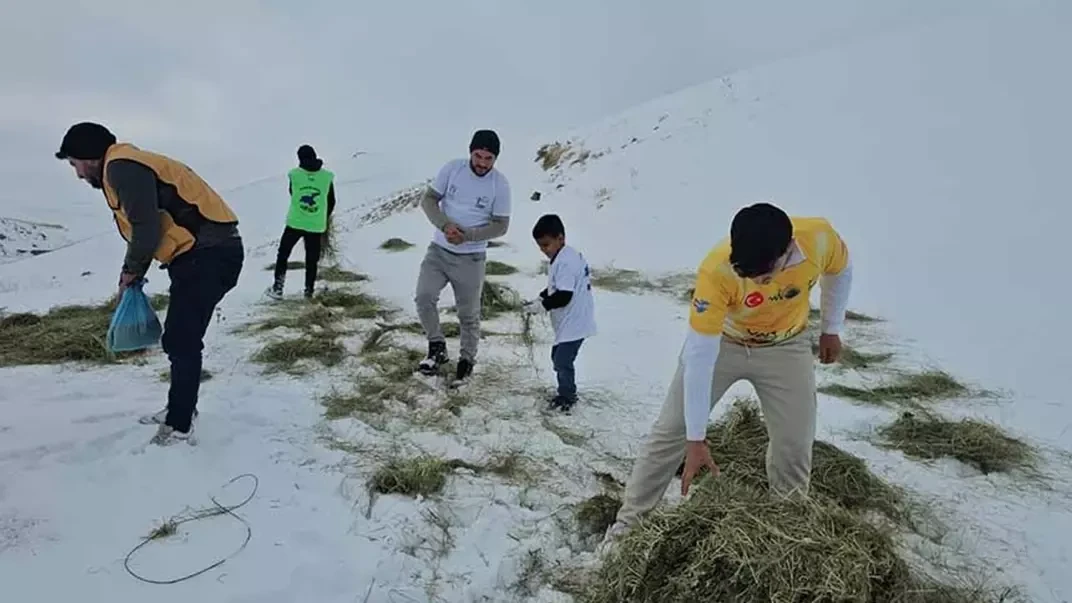 Bitlis’in Adilcevaz ilçesinde doğa ve hayvan hakları savunucuları, kış şartlarının ağırlaşmasıyla birlikte yiyecek bulmakta zorlanan yaban hayvanları için anlamlı bir etkinliğe imza attı. Vangölü Aktivistler Derneği üyeleri, 4 bin 58 rakımlı Süphan Dağı’nın eteklerine çıkarak yaban hayvanları için yem bıraktı.
