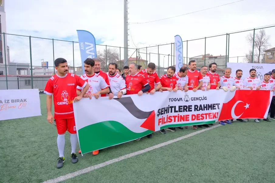 Öte yandan turnuvaya katılan sporcular sahaya “Şehitlere rahmet, Filistin’e destek” pankartıyla çıktı.
