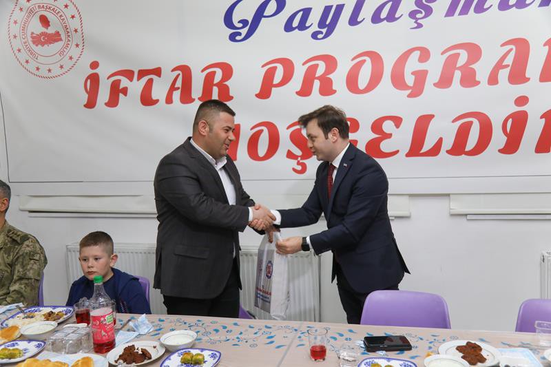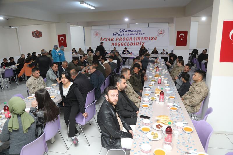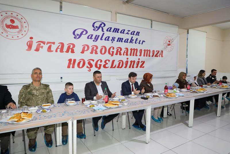Kaymakamlık Sosyal Yardımlaşma ve Dayanışma Vakfı Başkanlığı tarafından düzenlenen iftar programına İlçe Kaymakamı Muhammet Serdar Erdoğan, 6. Hudut Tugayı Komutanı Yardımcısı Albay Kemal Mıtırık, İlçe Emniyet Müdürü Sercan Haskan, İlçe Jandarma Komutanı Binbaşı Emre Göksu, kurum amirleri ve Şehit aileleri ile gaziler katıldı.