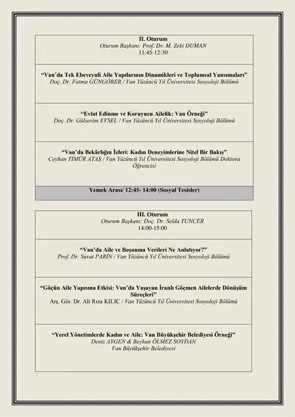 Vanhaber.tr'in haberine göre; Aile yapısı, toplumsal dönüşüm ve sosyal politikalar gibi başlıkların ele alınacağı sempozyum, Prof. Dr. Cengiz Andiç Kültür Merkezi’nde gerçekleştirilecek.